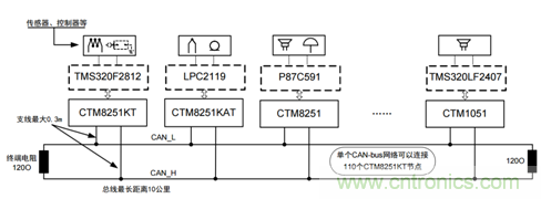 與485類似,CAN-bus也是以總線的方式進行通信的,所有的CAN節(jié)點都掛在一對差分線上。但CAN總線中的節(jié)點不存在主從的概念,當(dāng)節(jié)點有數(shù)據(jù)需要上傳時可自主、即時發(fā)送,先進的仲裁機制保證數(shù)據(jù)不會沖突。