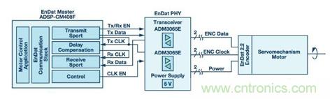 伺服驅(qū)動(dòng)器和ABS編碼器之間的RS-485通信鏈路通常要求最高達(dá)16 MHz的高數(shù)據(jù)速率和低傳播延遲時(shí)序規(guī)格。RS-485線纜延伸長(zhǎng)度最大值通常是50米,但有時(shí)候也可能長(zhǎng)達(dá)150米。對(duì)數(shù)據(jù)通信而言,電機(jī)控制編碼器應(yīng)用是具有挑戰(zhàn)性的環(huán)境,因?yàn)殡姎庠肼暫烷L(zhǎng)電纜會(huì)影響RS-485信號(hào)傳輸?shù)耐暾?。本文重點(diǎn)闡述電機(jī)控制應(yīng)用采用ADI公司50 Mbps (25 MHz) ADM3065E RS-485收發(fā)器和ADSP-CM40x混合信號(hào)控制處理器的主要好處。