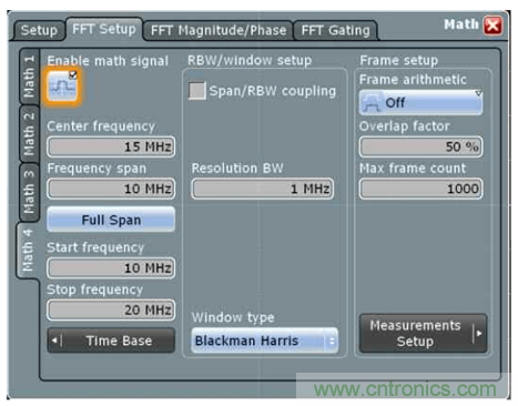 以前的示波器操控方式,無(wú)非是通過(guò)調(diào)整采集時(shí)間的長(zhǎng)度來(lái)影響分辨率帶寬,然后選擇感興趣的頻段來(lái)進(jìn)行觀察?,F(xiàn)在做法是先選擇中心頻率,或者選擇好起始和截止頻率,通過(guò)直接調(diào)整RBW 來(lái)調(diào)整頻譜觀察方式,讓習(xí)慣頻譜儀的用戶(hù)也習(xí)慣示波器了。