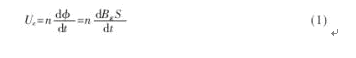 電磁感應(yīng)式傳感器的工作原理是:當(dāng)它貼著鋼管表面掃查時(shí),鋼管缺陷產(chǎn)生的漏磁場(chǎng)會(huì)引起穿過線圈的磁通量變化,從而使電磁線圈中產(chǎn)生感生電動(dòng)勢(shì),形成缺陷信號(hào)。當(dāng)檢測(cè)用的電磁線圈與鋼管做相對(duì)運(yùn)動(dòng)時(shí),檢測(cè)漏磁場(chǎng)的線圈所產(chǎn)生的感應(yīng)電動(dòng)勢(shì)Uc為: