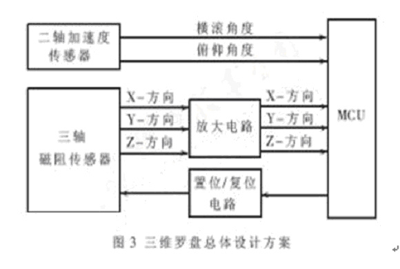 - 三維電子羅盤的總體設計。