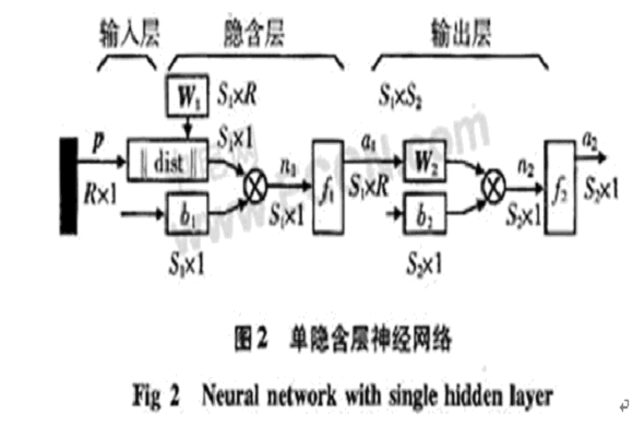其中,p為輸入矢量,R為輸入矢量維數(shù),S1為隱含層神經(jīng)元個(gè)數(shù),S2為輸出層神經(jīng)元個(gè)數(shù),W1為隱含層神經(jīng)元權(quán)值矩陣,W2為輸出層權(quán)值矩陣,b1為隱含層神經(jīng)元閥值,b2為隱含層神經(jīng)元閥值,n1為隱含層輸入節(jié)點(diǎn),n2為輸出層節(jié)點(diǎn)。f1為S型函數(shù),f2為purelin型函數(shù)。神經(jīng)網(wǎng)絡(luò)算法是用于前饋多層網(wǎng)絡(luò)的學(xué)習(xí)算法。如果輸出不能得到期望的輸出,則轉(zhuǎn)入后向傳播。通過(guò)誤差的后向傳播調(diào)整各層之間的權(quán)系數(shù)。反復(fù)輸入樣本序列,直至權(quán)系數(shù)不在改變?yōu)橹梗敵稣`差在規(guī)定的范圍之內(nèi)。算法采用如下改進(jìn):1)采用模擬退火法以克服局部最?。?)用奇函數(shù)作激勵(lì)函數(shù)和傳播過(guò)程中采用新誤差傳播因子完善該算法收斂性問(wèn)題。