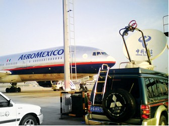 圖2:中國電信上海公司緊急在浦東機場遠(yuǎn)機位安裝3G無線全球眼
