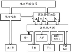 基于汽車?yán)走_(dá)傳感器的目標(biāo)分類系統(tǒng)的系統(tǒng)結(jié)構(gòu)和信號處理過程,它可以識別六種不同的雷達(dá)目標(biāo)的類別,包括:步行者、騎自行車的人、車輛、人群、樹木和交通標(biāo)志等。