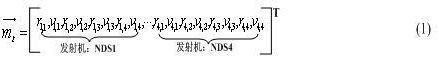 汽車?yán)走_(dá)網(wǎng)絡(luò)測量目標(biāo)的距離和速度是通過對每個(gè)傳感器測得的目標(biāo)信息進(jìn)行數(shù)據(jù)融合而得到的。在一個(gè)測量周期中,每個(gè)NDS輪流擔(dān)當(dāng)一次發(fā)射機(jī)。因此有16種距離和相對速度的組合,用向量表示為: