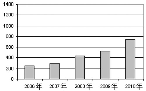 2006-2010年MEMS手機(jī)市場規(guī)模 單位:百萬美元