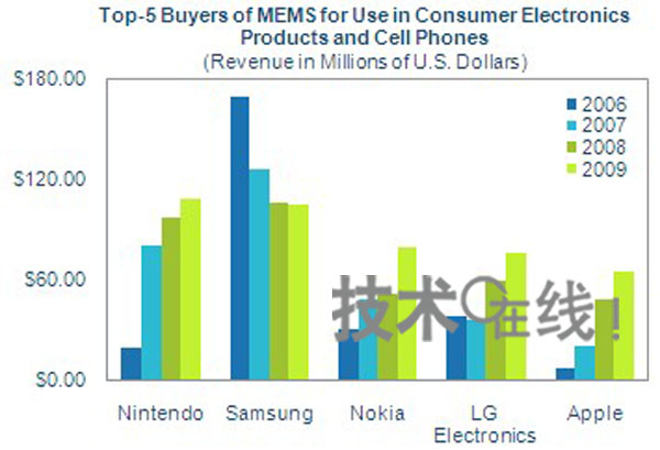 2009年購買消費(fèi)類電子產(chǎn)品與手機(jī)用MEMS的企業(yè)排行榜