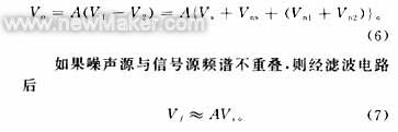 設(shè),Vs為傳感器的信號電壓;Vn1、Vn2為外部噪聲源在電纜線上的感應(yīng)噪聲電壓;Vns為電路噪聲,因此,差分放大器輸出電壓Vo為: