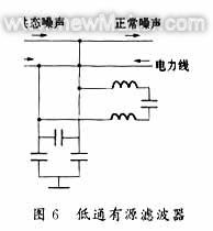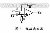 通常,經(jīng)典濾波器用得最多。濾波電路可以由無源元件R、L、C組成,如圖5所示的線路濾波器;也可以包含有源元件(如圖6所示),它的優(yōu)點(diǎn)主要是具有一定的信號放大和帶負(fù)載能力。濾波電路從功能上又可分為四類:低通(LP)、高通(HP)、帶通(BP)、帶阻(BS)濾波器。每一種又有模擬(AF)與數(shù)字(DF)濾波器兩種形式。由于傳感器信號一般為緩慢變化的信號,故選用低通濾波器抑止高頻噪聲信號最多。通常如巴特沃斯濾波器、切比雪夫?yàn)V波器、橢圓濾波器等。常用低通濾波電路如圖6所示。