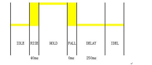 圖4是一個觸摸按鍵應用中一次典型的按鍵波形,每個按鍵按下后,系統(tǒng)都需輸出對應的電壓值以供其他系統(tǒng)檢測。該應用要求響應時間小于等于40ms,當按鍵被長按時,需要一直輸出按鍵電壓,即使按鍵釋放后,仍需250ms時間保持原有按鍵電壓,之后停止輸出按鍵電壓,進入空閑狀態(tài)。系統(tǒng)共包含12個觸摸按鍵,當多個按鍵被同時按下時,系統(tǒng)不響應。系統(tǒng)低功耗設計要求為,系統(tǒng)待機時沒有按鍵操作的平均電流應至少小于1mA。