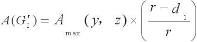 在t6時間段,位置信號發(fā)生器對G0傳輸對線發(fā)送載波時,G0的III區(qū)域?qū)€圈1的感應(yīng)面積為:S=(W-d0)xB,G0的II區(qū)域?qū)€圈1的感應(yīng)面積為S=d0×B,由于II、III區(qū)域?qū)€圈1產(chǎn)生的感應(yīng)信號相位相反,所以線圈1有效感應(yīng)面積S=(W-d0)×B-d0×B=2(r-d0)×B。設(shè)線圈1最大感應(yīng)面積Smax=W×B=2r×B,對應(yīng)感應(yīng)信號最大幅度為Amax(y,z),則有:
