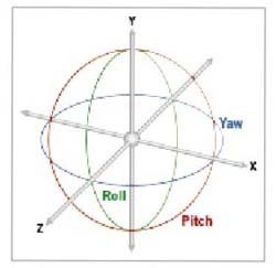 圖1 全運動評估所需的6自由度運動測量:x、y、z軸線性運動和滾動、俯仰、偏航角速率轉(zhuǎn)動