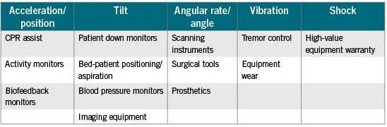 通過一個功耗極低的緊湊器件來精確檢測和測量運動的能力,幾乎對任何涉及到運動的應(yīng)用都是有價值的,甚至對那些運動要求不是很關(guān)鍵的應(yīng)用也是有價值的。表1按運動類型列出了一些基本醫(yī)療應(yīng)用。需要解決更多挑戰(zhàn)的更高級應(yīng)用將在稍后討論。