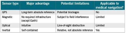 表2 廣泛應(yīng)用的導航傳感器及其對醫(yī)療導航的適用性