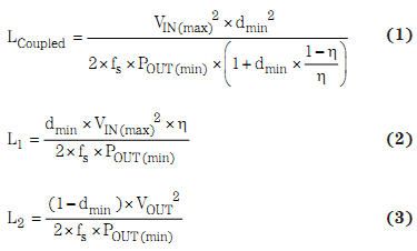 方程式 1 到 3 表明了耦合電感和非耦合電感的電感計算過程。