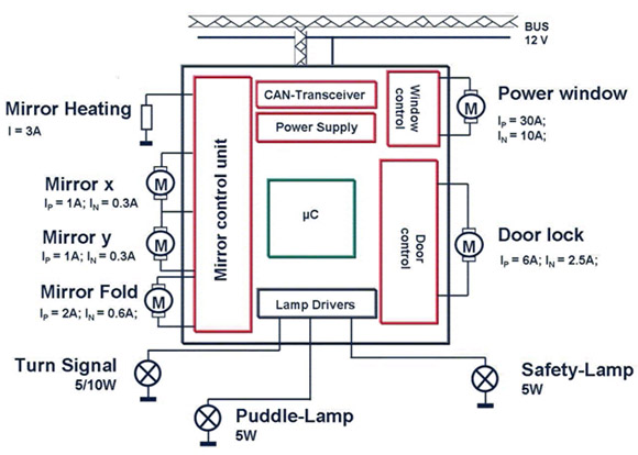 過去十年里,汽車電子有了飛速的發(fā)展。許多曾用電機實現的功能已被轉換成電子模塊。最好的例子是車門裝置。由電子控制單元(ECU)控制和驅動的電動車窗、電動后視鏡和門鎖幾乎成了所有新車的標準配置。