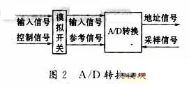 A/D轉(zhuǎn)換模塊對絕對值信號(hào)進(jìn)行采樣轉(zhuǎn)化,如圖2所示:模擬多路開關(guān)在卦限控制信號(hào)的作用下,對絕對值信號(hào)進(jìn)行選擇,其輸出分別作為A/D轉(zhuǎn)換的輸入信號(hào)和參考信號(hào)。A/D轉(zhuǎn)換受控于采樣控制信號(hào),其輸出數(shù)據(jù)與采樣時(shí)刻的相位信號(hào)對應(yīng)。