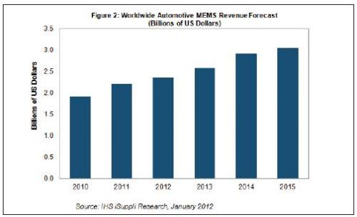 據(jù)IHS iSuppli公司的MEMS研究報(bào)告,2011年汽車MEMS傳感器與激勵(lì)器的表現(xiàn)比預(yù)期中要好很多,大大超出期望值,盡管受到日本大地震泰國洪災(zāi)等不利因素影響。