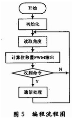 軟件編程主要包含3個(gè)模塊:PWM控制電流輸出模塊、RS 485通信模塊、MLX90316的SPI通信模塊,編程流程如圖5所示。PWM控制電流輸出模塊主要通過(guò)改變PWM的占空比來(lái)調(diào)節(jié)電流的大小。RS 485通信模塊主要用來(lái)接收上層系統(tǒng)的指令并根據(jù)指令將數(shù)據(jù)回傳。MLX90316的SPI通信模塊主要用于磁敏角度的讀取,SPI的通訊過(guò)程為:主控端先輸出1個(gè)0xAA以及1個(gè)0xFF作為通信起始信號(hào),然后接著輸出8個(gè)0xFF,而從端會(huì)同時(shí)輸出2個(gè)0xFF、4個(gè)字節(jié)的角度信號(hào)以及4個(gè)0xFF,從而完成一次數(shù)據(jù)通訊。