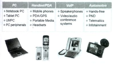 數(shù)字ECM或MEMS傳聲器和傳統(tǒng)的ECM傳聲器相比,有著不可取代的優(yōu)勢(shì)。首先,移動(dòng)設(shè)備向小型化數(shù)字化發(fā)展,急需數(shù)字拾音器件和技術(shù)與之配套;第二,數(shù)字設(shè)備包含的功能單元越來越多,如筆記本式計(jì)算機(jī),集成了藍(lán)牙和WiFi無線功能,傳聲器的安裝位置距離這些干擾源很近,設(shè)備對(duì)傳聲器抗干擾性能的要求越來越高;第三,隨著三網(wǎng)合一的發(fā)展,需要上網(wǎng)、視頻和語(yǔ)音傳輸可以同時(shí)進(jìn)行,這在移動(dòng)設(shè)備中通常會(huì)遇到環(huán)境背景噪聲和線路回聲的影響;第四,從提高生產(chǎn)效率的角度考慮,希望對(duì)傳聲器元件采用SMT工藝焊接組裝。數(shù)字傳聲器尤其是具有集成電路本質(zhì)的微機(jī)電( MEMS)數(shù)字傳聲器更加適合SMT焊接組裝工藝,為了解決系統(tǒng)各種射頻干擾對(duì)語(yǔ)音通信產(chǎn)生的噪聲,數(shù)字傳聲器尤其適用于通過算法編程達(dá)到陣列拾音技術(shù)的實(shí)現(xiàn),對(duì)于抑制環(huán)境背景噪聲和消除通話時(shí)的線路回聲方面具有突出的技術(shù)優(yōu)勢(shì),數(shù)字傳聲器輸出接口格式同數(shù)字處理系統(tǒng)具有高度的接口兼容性。數(shù)字傳聲器的應(yīng)用見圖7~8.