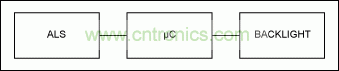 圖1是實(shí)施背光控制的系統(tǒng)示范框圖。在這套組合中,光傳感器是關(guān)鍵的組成部分,因?yàn)樗蛳到y(tǒng)的其他模塊提供環(huán)境光強(qiáng)信息。光傳感器必須具備將光信號轉(zhuǎn)換成電信號的信號轉(zhuǎn)換器(譬如光電二極管或CdS光敏電阻)和信號放大和/或調(diào)節(jié)裝置以及模/數(shù)轉(zhuǎn)換器(ADC)。