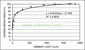 圖7. 將環(huán)境光強(qiáng)映射為最佳顯示屏亮度的曲線示例