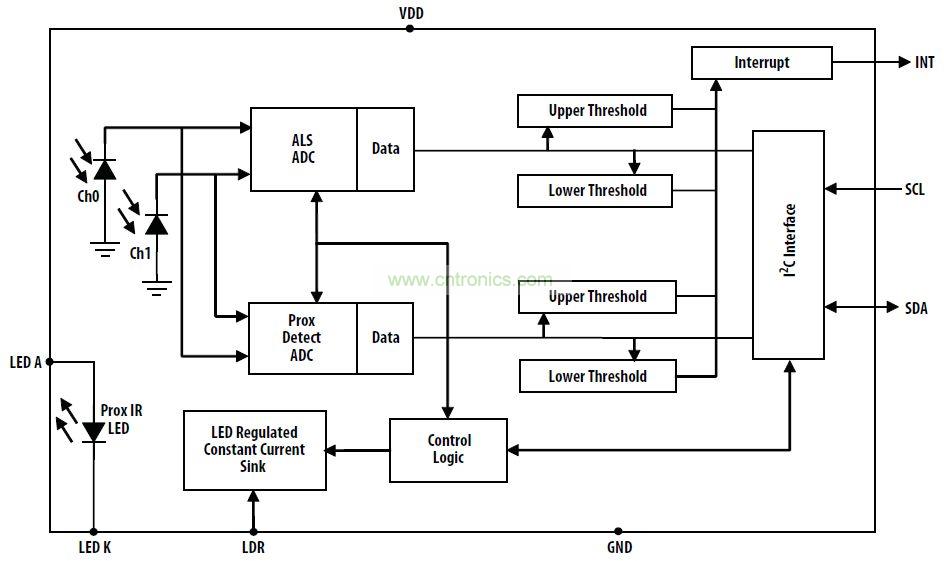 產(chǎn)品特性:光學(xué)模塊中的 ALS、紅外 LED 和近接式檢測器