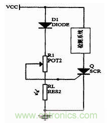 單向可控硅是一種可控整流電子元件,能在外部控制信號作用下由關(guān)斷變?yōu)閷?dǎo)通,但一旦導(dǎo)通,外部信號就無法使其關(guān)斷,只能靠去除負載或降低其兩端電壓使其關(guān)斷。單向可控硅正向?qū)ㄊ芸刂茦O電流控制,根據(jù)此特性,在光敏電阻的作用下,利用單向可控硅作為檢測系統(tǒng)的啟動開關(guān)。