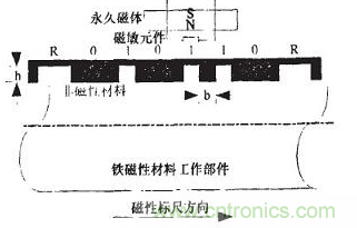 激勵磁場采用長方體永久磁體,其磁極贏接對著磁性標尺,使測量出的有效磁場變化范圍大。