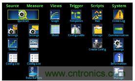 吉時(shí)利2450型交互式數(shù)字源表SMU儀器簡(jiǎn)化了非傳統(tǒng)用戶的學(xué)習(xí)曲線,使之從使用多層菜單結(jié)構(gòu)和多功能按鈕配置功能的繁瑣工作中解脫出來。2450型儀器使用基于圖標(biāo)的平面菜單系統(tǒng),就像在智能消費(fèi)電子產(chǎn)品中使用的菜單系統(tǒng)一樣簡(jiǎn)單,如平板電腦或智能手機(jī)上顯示的應(yīng)用圖標(biāo)排列。
