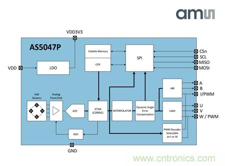 【導(dǎo)讀】近日,ams發(fā)布47系列最新磁性旋轉(zhuǎn)位置傳感器AS5047P。該傳感器可實(shí)現(xiàn)高轉(zhuǎn)速下、全溫度范圍內(nèi)的最高精確度,可用于電機(jī)與運(yùn)動(dòng)控制。AS5047P具備遞增式ABI輸出,性能更優(yōu)于電機(jī)及運(yùn)動(dòng)控制系統(tǒng)中的光學(xué)編碼器及旋轉(zhuǎn)變壓器,在實(shí)現(xiàn)高精度性能的同時(shí)能降低系統(tǒng)成本。