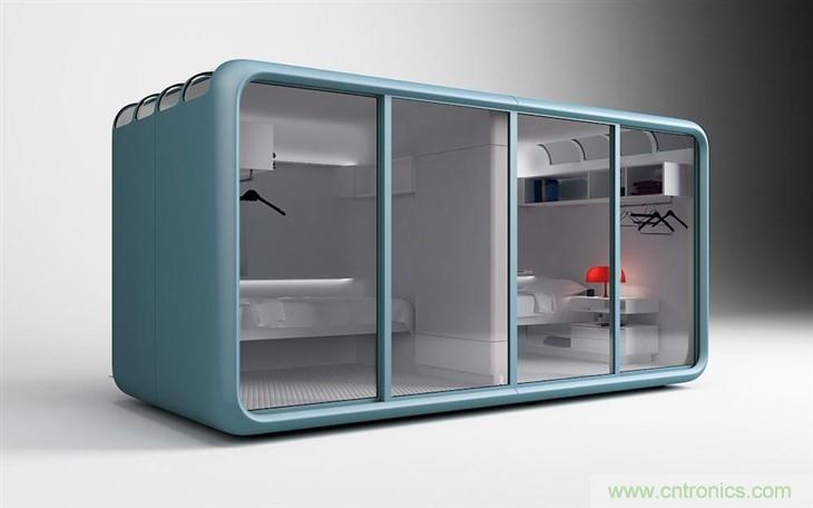 如果能夠消除工作和生活之間的界線,絕對適合那些短時(shí)間需要大量工作或靈感設(shè)計(jì)的人。這個(gè)小型睡眠艙的長寬高均為7英尺,包括了必要的家居,比如床、櫥柜、書架、藥品箱等等。另外,包括衛(wèi)生間也被設(shè)計(jì)在了睡眠倉內(nèi),可以說,它非常適合那些辛苦的創(chuàng)業(yè)者或設(shè)計(jì)師們。