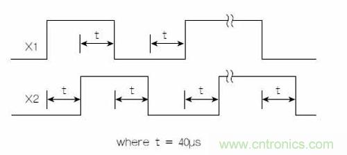 該芯片產(chǎn)生的正交X方向輸出信號模擬了普通編碼器的輸出。X和Y信號都可以用于2D系統(tǒng)。OM02以最高約25kHz的頻率產(chǎn)生X1和X2正交信號。圖1顯示了正向X運動(向右方向)的時序圖。這種正交輸出在需要時還可以用于直流步進(jìn)電機(jī)控制。