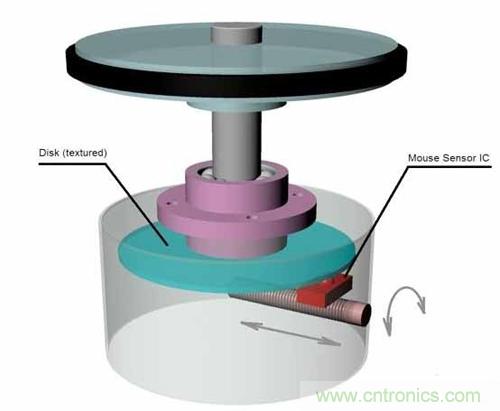 【導(dǎo)讀】本設(shè)計實例使用光學(xué)電腦鼠標(biāo)中的傳感器測量圓盤的旋轉(zhuǎn),其中的圓盤可以通過機(jī)械方式連接到任何一種旋轉(zhuǎn)裝置。通過沿著圓盤半徑改變傳感器位置,該方案可以調(diào)整每次旋轉(zhuǎn)的脈沖。