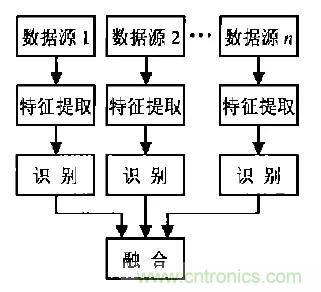 2.特征層融合:特征層融合屬于中間層次,先從每種傳感器提供的觀測數(shù)據(jù)中提取的有代表性的特征,這些特征融合成單一的特征向量,然后運(yùn)用模式識(shí)別的方法進(jìn)行處理。這種方法的計(jì)算量及對(duì)通信帶寬的要求相對(duì)降低,但由于部分?jǐn)?shù)據(jù)的舍棄使其準(zhǔn)確性有所下降。