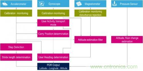 慣性傳感器、磁力計和壓力傳感器是航位推算應(yīng)用中必不可少的傳感器組件,用之可大幅提升導(dǎo)航性能,這些器件的功耗必須極低,這樣才能始終保持開啟模式并提供數(shù)據(jù)用于航位推算應(yīng)用。實現(xiàn)隨時隨地定位的目標(biāo)離不開高品質(zhì)的MEMS傳感器和高性能的行人航位推算算法。本文主要討論各種行人航位推算算法上需要用到的傳感器組件的數(shù)學(xué)表述,以及可用性和可靠性更高的PDR行人航位推算算法的測試結(jié)果。