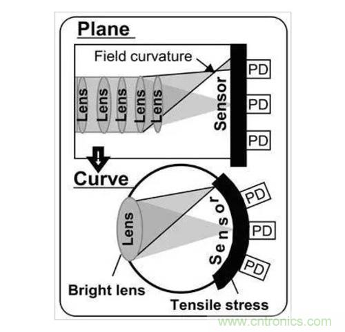重要轉(zhuǎn)折出現(xiàn)在2014年6月,索尼工程師利用仿生學,開發(fā)出了一套模擬人眼形狀的彎曲CMOS圖像傳感器。并在夏威夷檀香山舉辦的2014年超大型積體技術及電路研討會上展示了出來。這塊CMOS對角線長43mm,可應用于全畫幅數(shù)碼相機。除此以外還有一款對角線長11mm 2/3“ 的曲面?zhèn)鞲衅?,專門用于手機攝像頭。雖然我們見到了真的曲面?zhèn)鞲衅鳎上У氖堑谝豢畲钶d這塊傳感器的產(chǎn)品卻遲遲沒有出現(xiàn)。