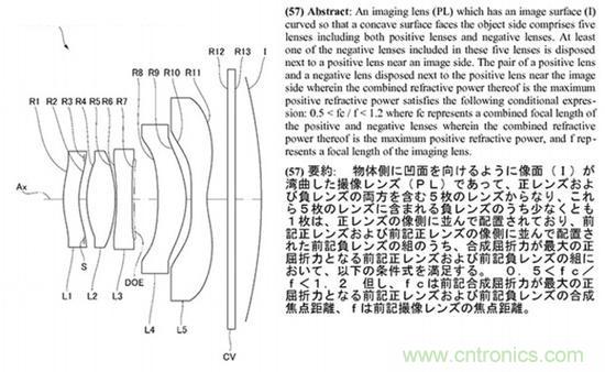 緊接著在2012年12月索尼曲面?zhèn)鞲衅鲗S苗R頭專利公布,針對1.4“及以下傳感器進行設計,結合索尼曲面CMOS傳感器,可以有效消除像場彎曲現(xiàn)象,改善邊緣畫質(zhì)。