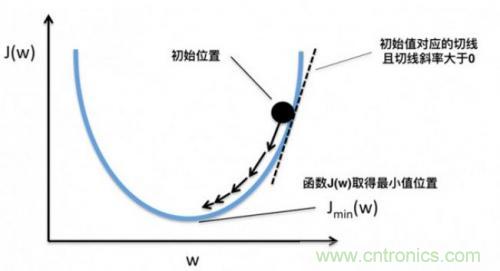 根據(jù)導數(shù)判斷損失函數(shù)f在x0點上應(yīng)當如何移動,才能使得f最快到達最小值的方法,我們稱為梯度下降。梯度也就是導數(shù),沿著負梯度的方向,按照梯度值控制移動步長,就能快速到達最小值。當然,實際上我們未必能找到最小點,特別是本身存在多個最小點時,但如果這個值本身也足夠小,我們也是可以接受的,如下圖所示: