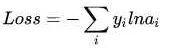 然而實際上x對應(yīng)的概率其實是第一類,比如[1,0,0],現(xiàn)在拿到的概率(或者可稱為似然)是[0.88、0.12、0]。那么它們之間究竟有多大的差距呢?這個差距就是損失值loss。如何獲取到損失值呢?在softmax里我們用互熵損失函數(shù)計算量最?。ǚ奖闱髮В?,如下所示: