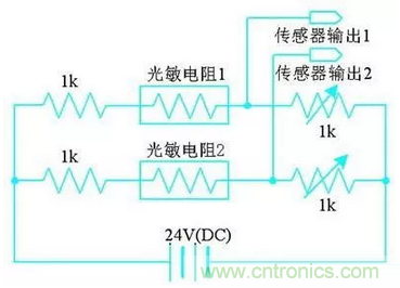 注:24VDC供電的傳感器,在輸入回路上需要串聯(lián)限流電阻,R1為10Ω,R2為2KΩ,不串聯(lián)限流電阻,將燒毀接口回路,限流電阻取值2.7KΩ。