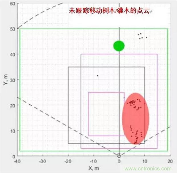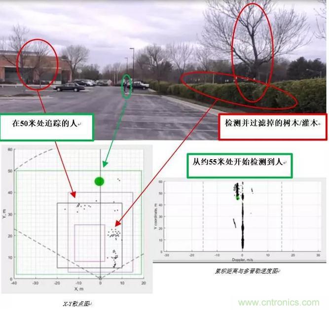 圖2顯示了使用毫米波技術(shù)的入侵檢測;毫米波傳感器分析場景中對象的速度,過濾掉移動背景中的運(yùn)動,僅跟蹤人物。