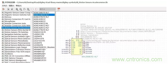 KiCad是一種開(kāi)源免費(fèi)的電子設(shè)計(jì)自動(dòng)化 (EDA) 工具,能滿足基本的原理圖與PCB板設(shè)計(jì)功能,Digi-Key推出自己的Digi-Key KiCad 電子元器件庫(kù),幫助加速設(shè)計(jì)進(jìn)程。其中包括多個(gè)ADI加速度傳感器的原理圖庫(kù)與封裝庫(kù)。舉例:ADI的 ADXL335BCPZ-RL7。