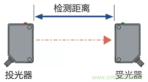 對(duì)射型光電傳感器:發(fā)射端和接收端之間的距離