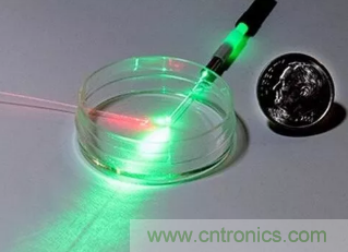 圖1:美國和澳大利亞的研究人員開發(fā)了一種非侵入性、即時測量液體pH值的方法,該方法使用了激光光源、光纖探頭以及一些基本的化學(xué)試劑。